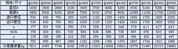 按上述公式計(jì)算出分離器內(nèi)徑,按表格1選定規(guī)格。