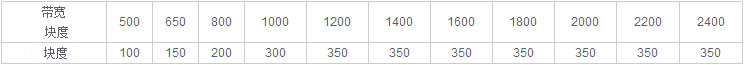 表1 各種帶寬適用的塊度