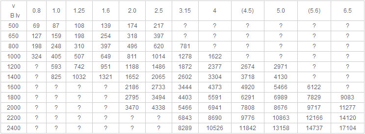 2、表中帶速(4.5)、(5.6)為非標(biāo)準(zhǔn)值,一般不推薦選用。
