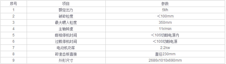 雙輥碎渣機(jī)技術(shù)參數(shù):